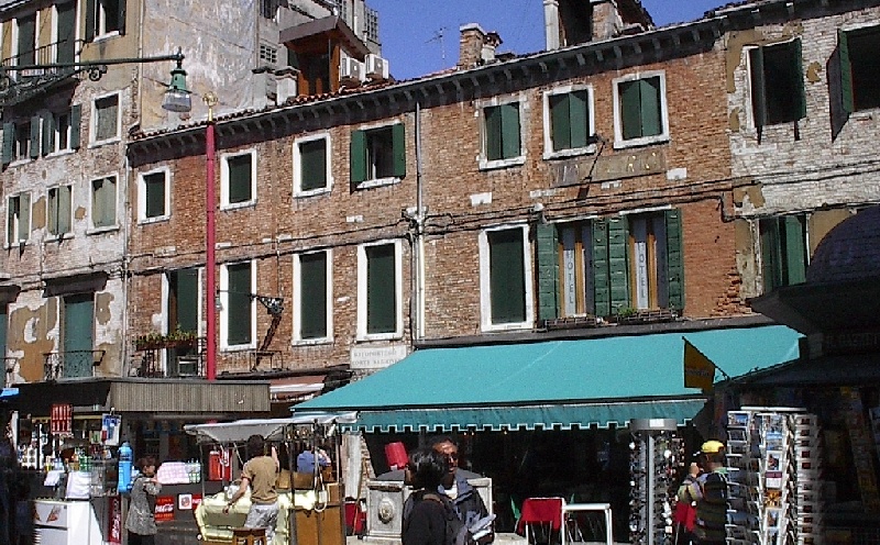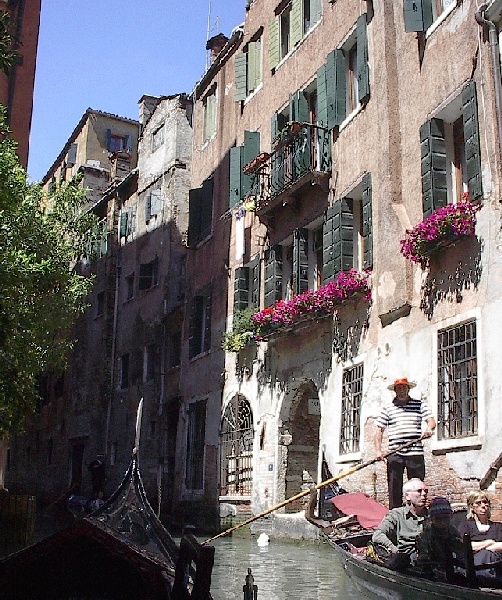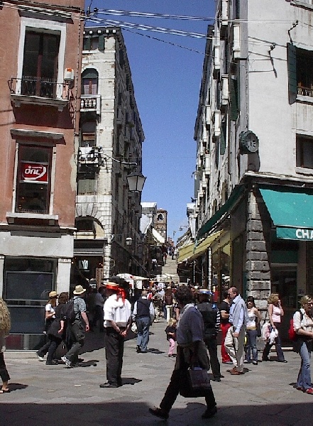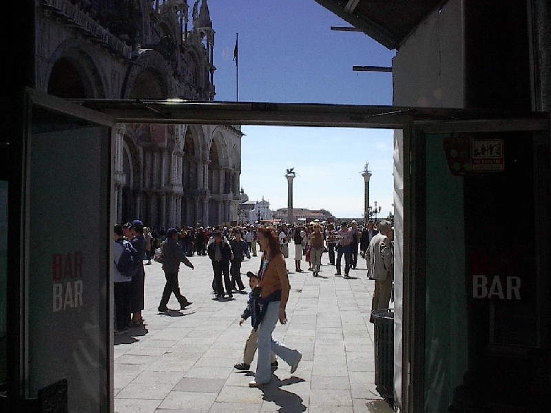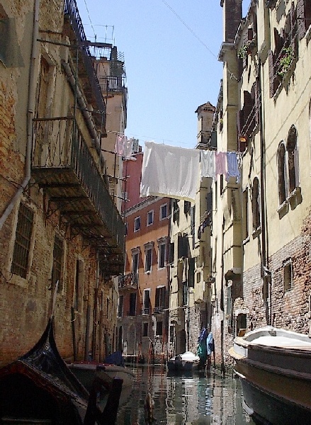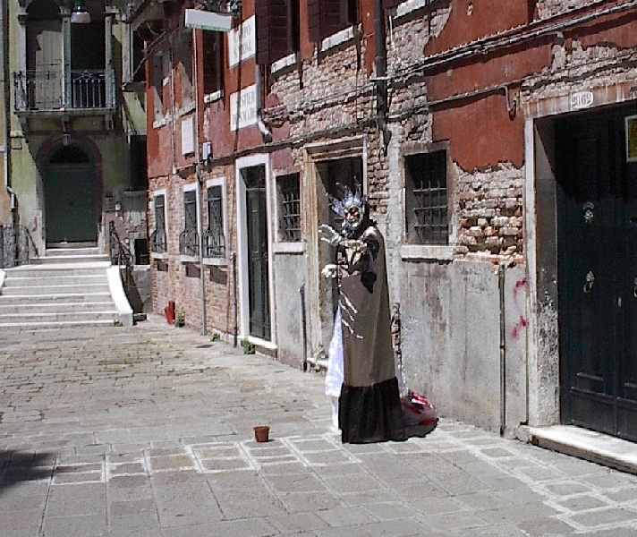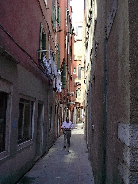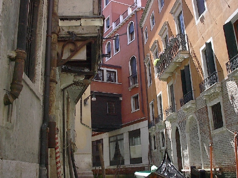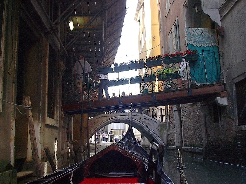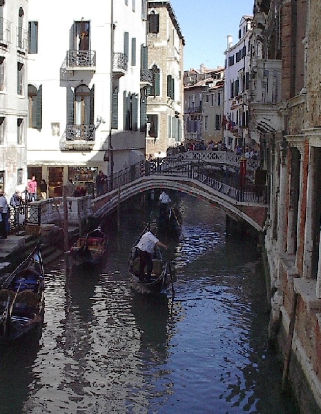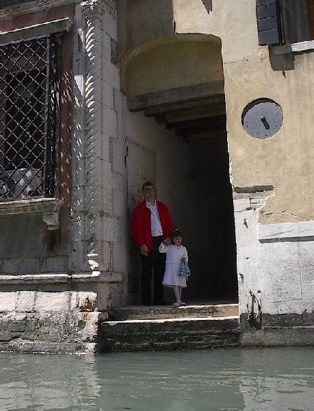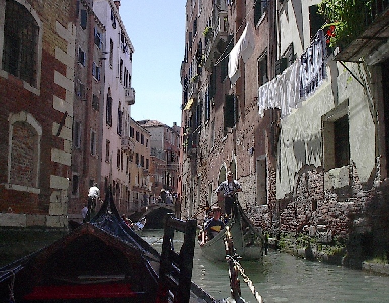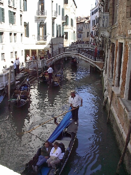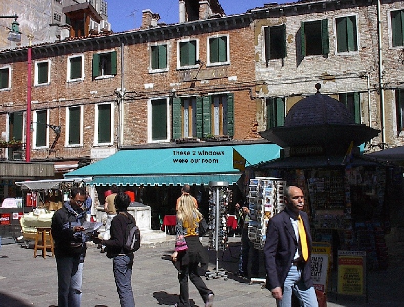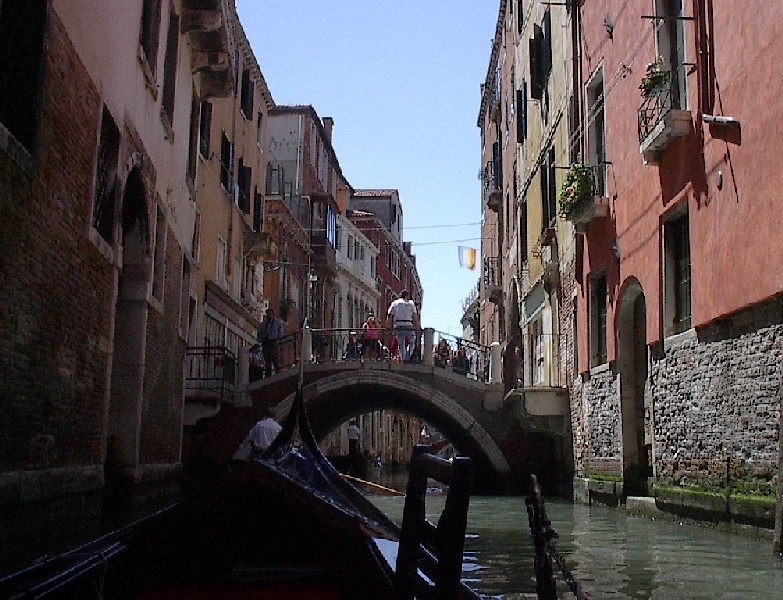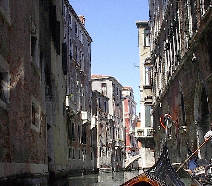 These pictures are of my 2 1/2 days in Venezia, Italy, in late May, 2004, made possible by my friend, Sandy Hugill. I wanted pictures that demonstrated what it was like to be there, so I tried to capture everything I saw, not just the "post card" shots. Looking back at them, I can honestly say that these photos are a very accurate representation of what it feels like to be in Venice (at least the parts I got to see). As for the smell and the sounds, Venice is very similar to your favorite theme park. It's mostly made up of tourists, so almost everyone speaks at least a little English and there is always activity, so it's never quiet. In addition to the wonderful smell of Italian food, there is the water, in which they seem to dump just about anything, so it occasionally hits you with a very "rich" odor. Despite all of that, it's still quite beautiful and if you can look past what we've done to it, you can still feel the romance of a time passed.