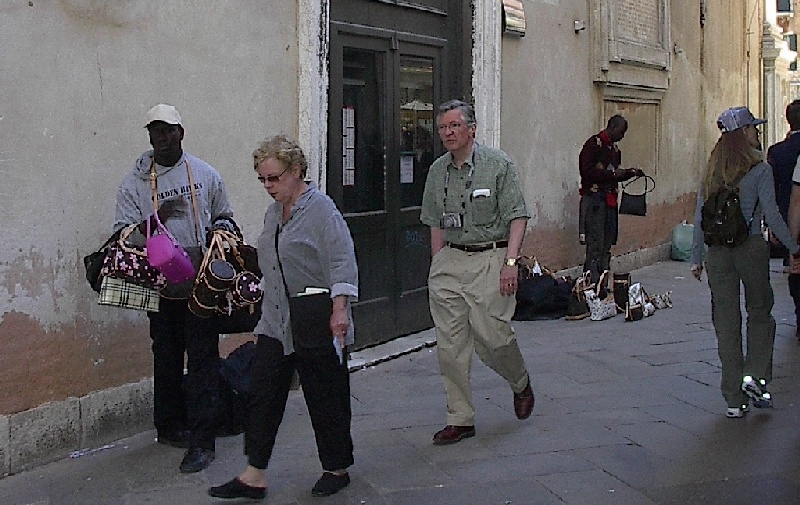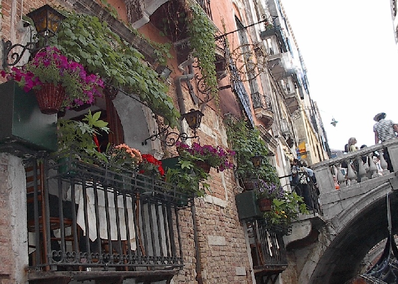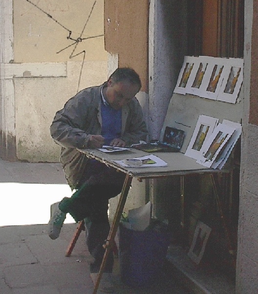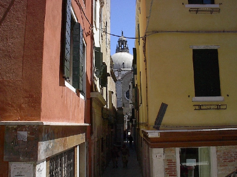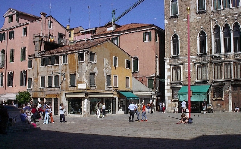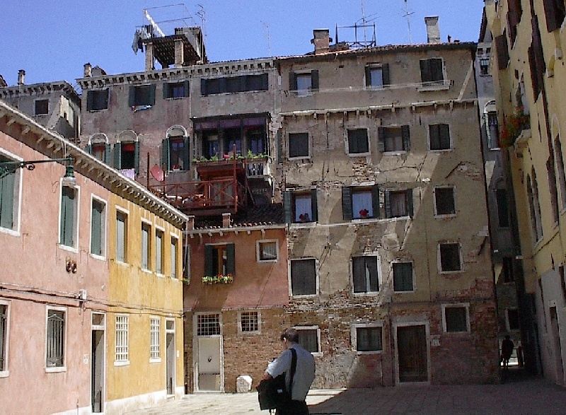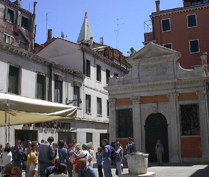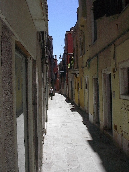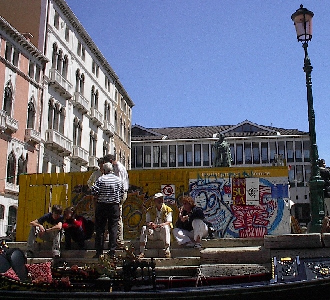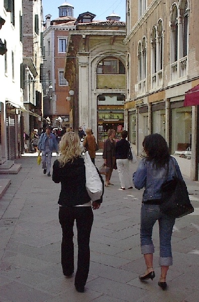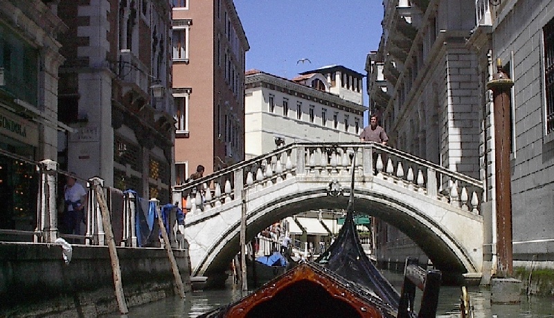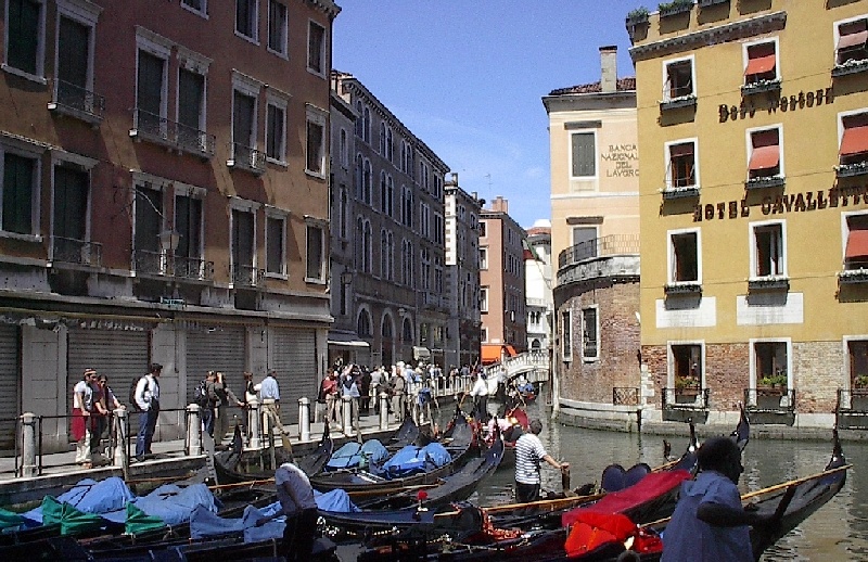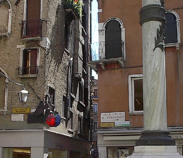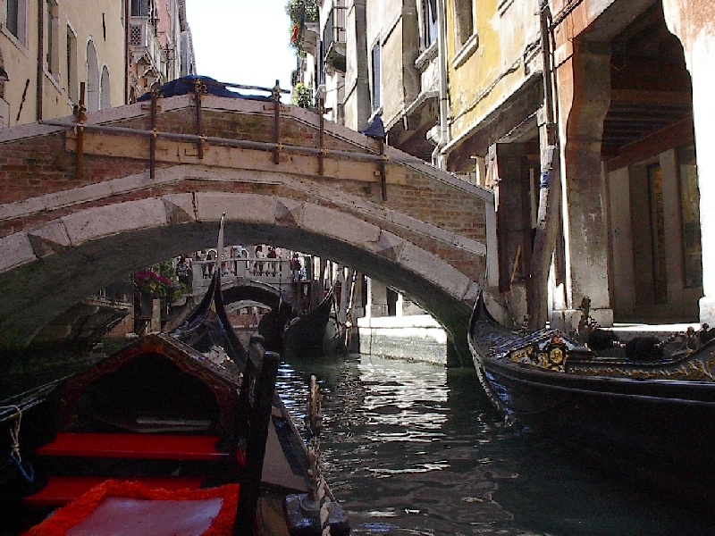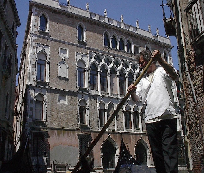These pictures are of my 2 1/2 days in Venezia, Italy, in late May, 2004, made possible by my friend, Sandy Hugill. I wanted pictures that demonstrated what it was like to be there, so I tried to capture everything I saw, not just the "post card" shots. Looking back at them, I can honestly say that these photos are a very accurate representation of what it feels like to be in Venice (at least the parts I got to see). As for the smell and the sounds, Venice is very similar to your favorite theme park. It's mostly made up of tourists, so almost everyone speaks at least a little English and there is always activity, so it's never quiet. In addition to the wonderful smell of Italian food, there is the water, in which they seem to dump just about anything, so it occasionally hits you with a very "rich" odor. Despite all of that, it's still quite beautiful and if you can look past what we've done to it, you can still feel the romance of a time passed.