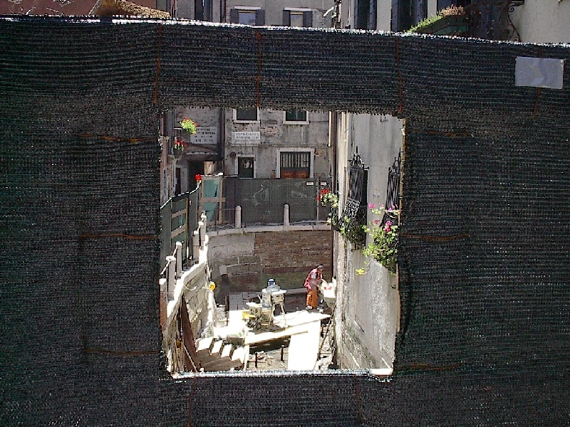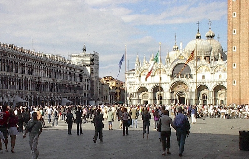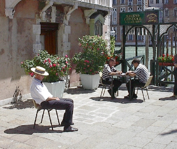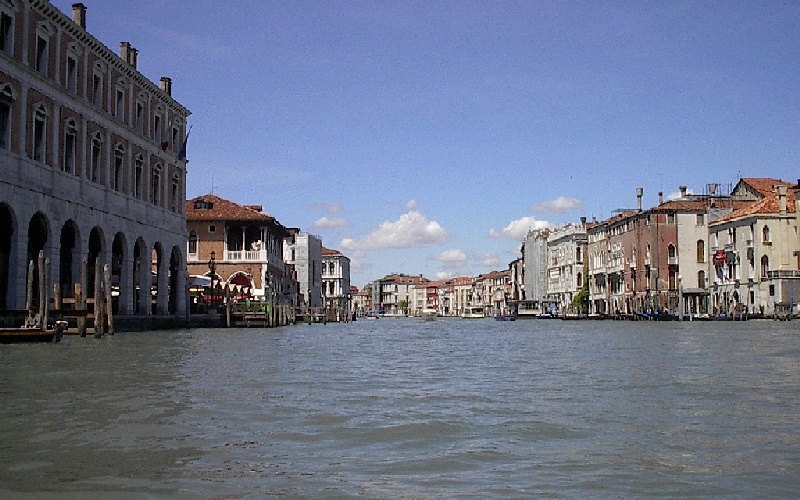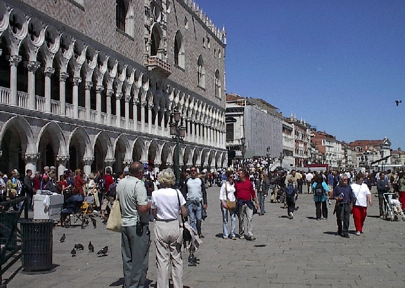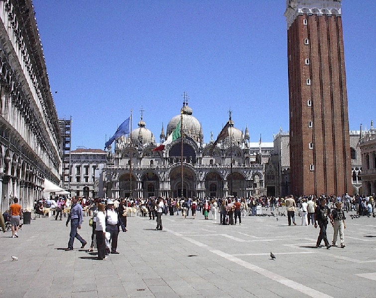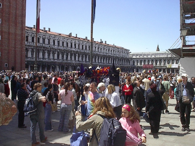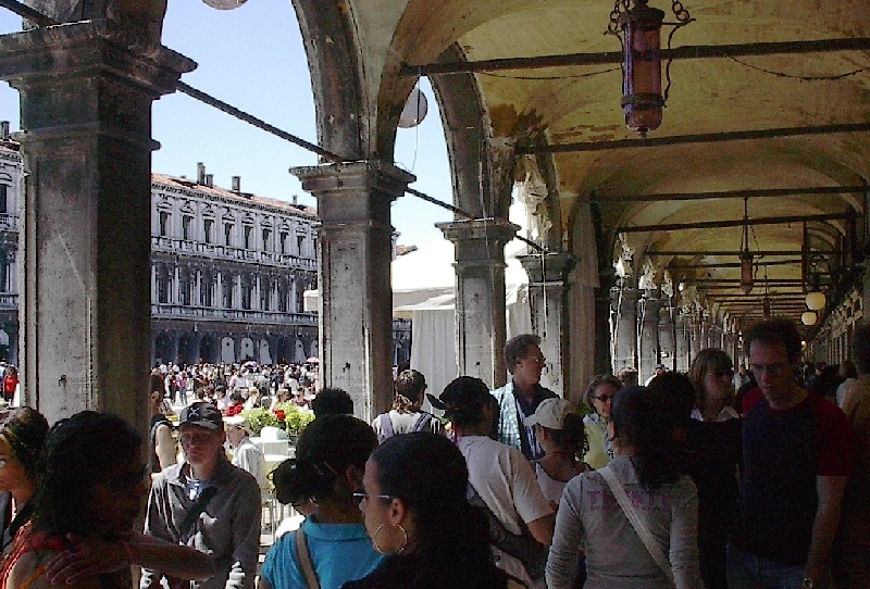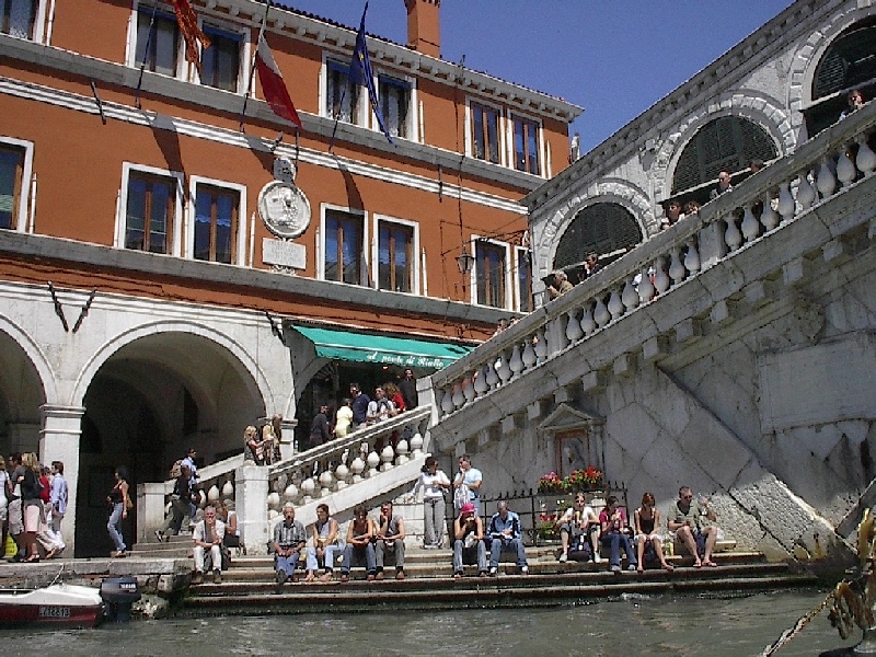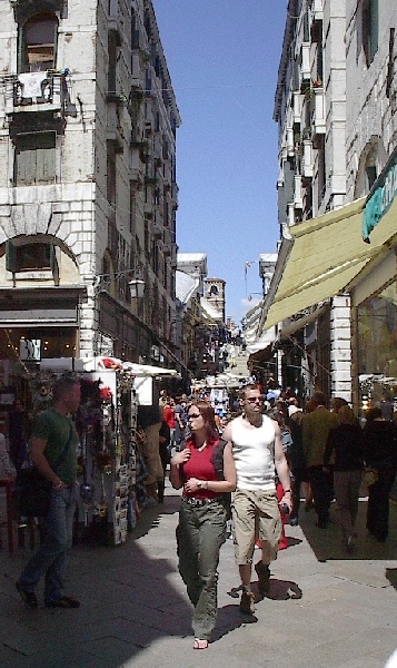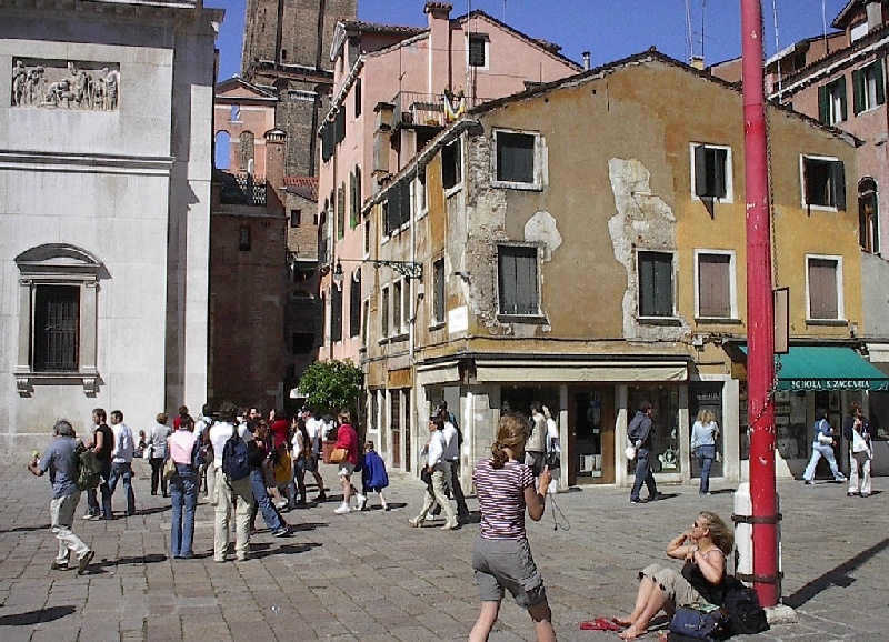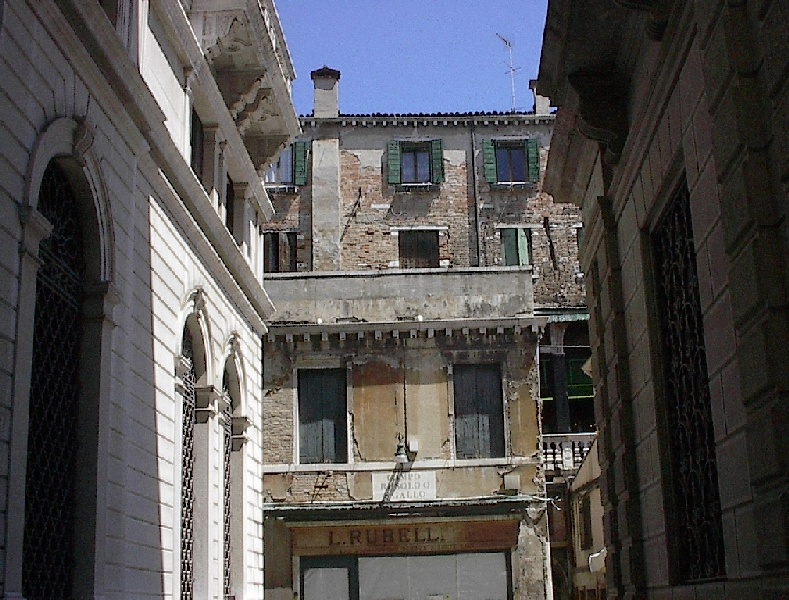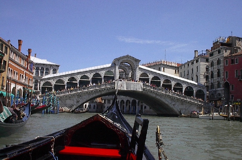 These pictures are of my 2 1/2 days in Venezia, Italy, in late May, 2004, made possible by my friend, Sandy Hugill. I wanted pictures that demonstrated what it was like to be there, so I tried to capture everything I saw, not just the "post card" shots. Looking back at them, I can honestly say that these photos are a very accurate representation of what it feels like to be in Venice (at least the parts I got to see). As for the smell and the sounds, Venice is very similar to your favorite theme park. It's mostly made up of tourists, so almost everyone speaks at least a little English and there is always activity, so it's never quiet. In addition to the wonderful smell of Italian food, there is the water, in which they seem to dump just about anything, so it occasionally hits you with a very "rich" odor. Despite all of that, it's still quite beautiful and if you can look past what we've done to it, you can still feel the romance of a time passed.