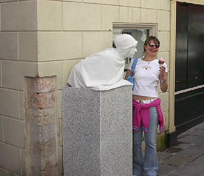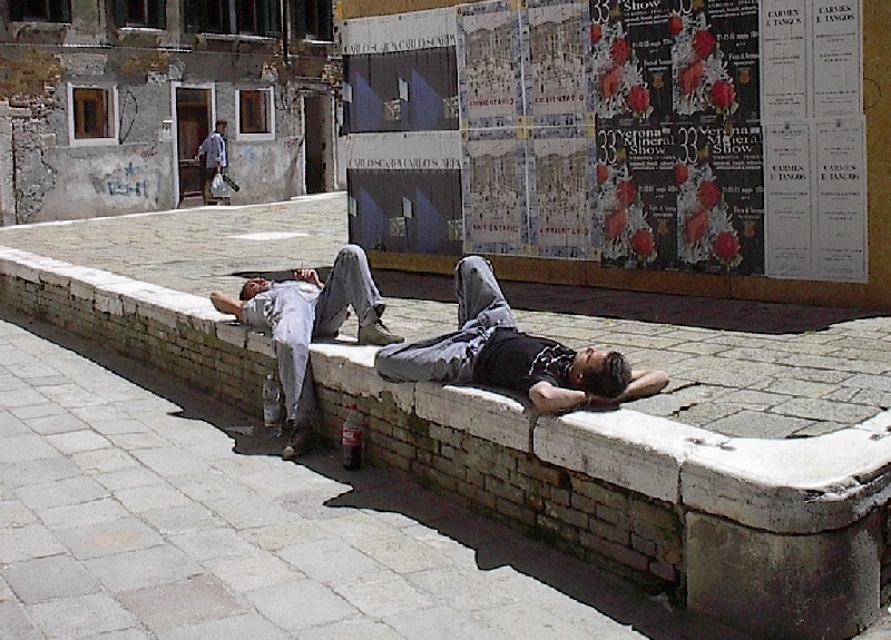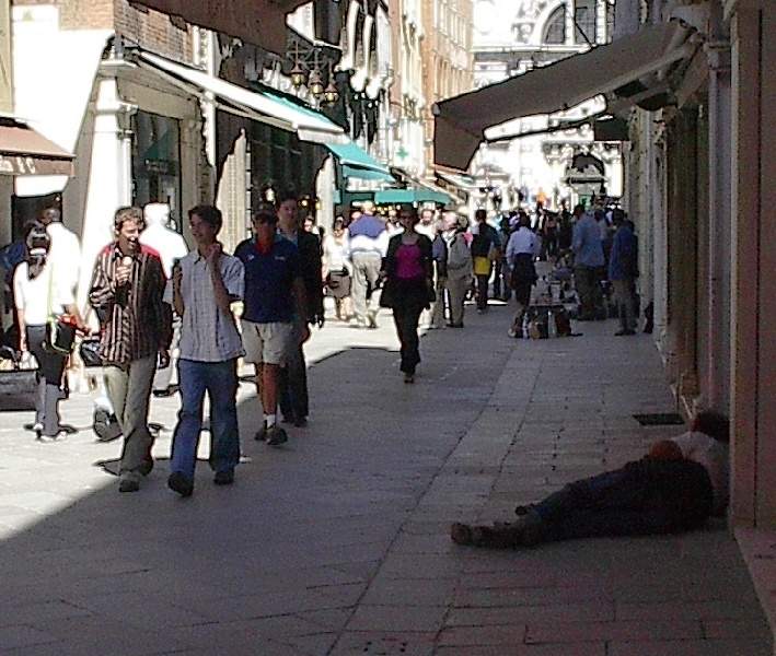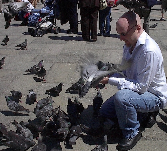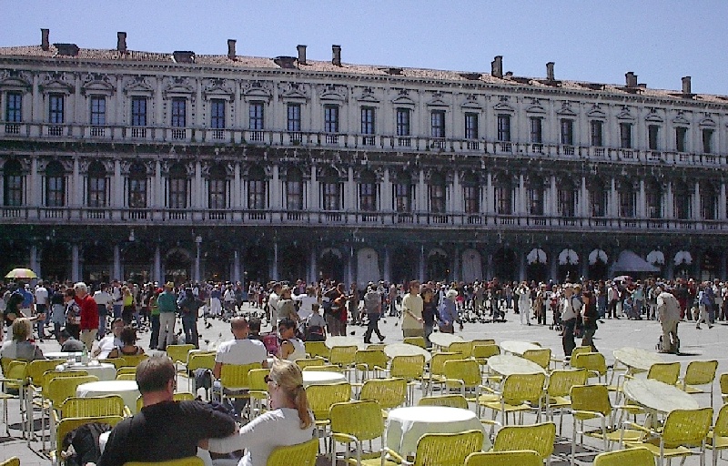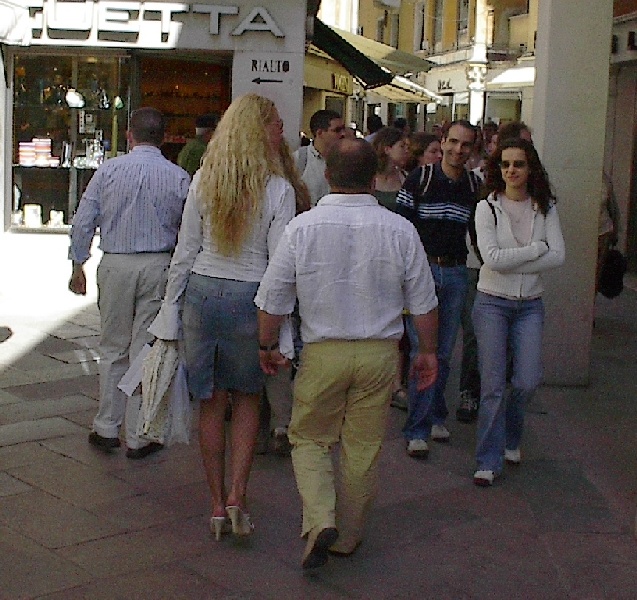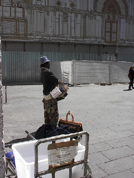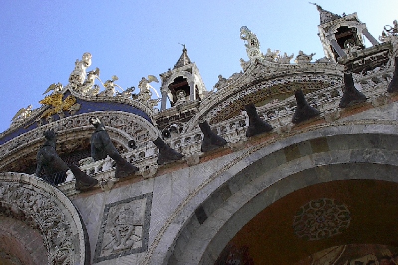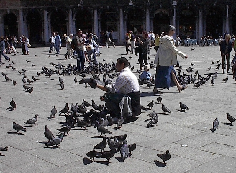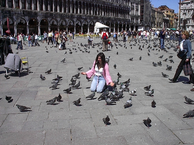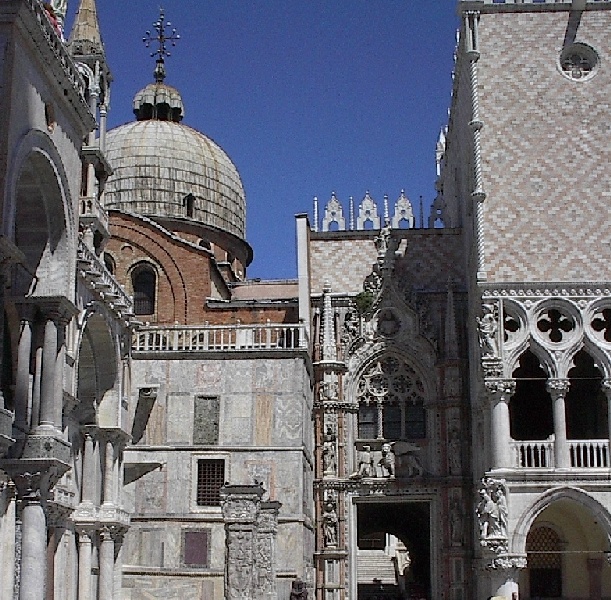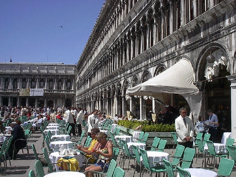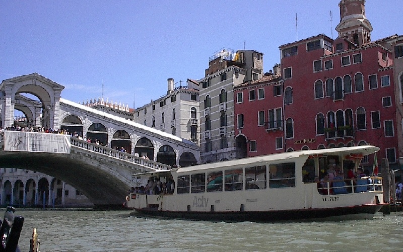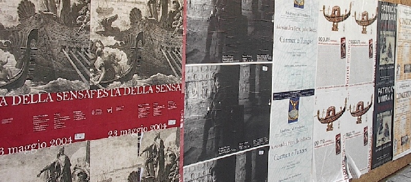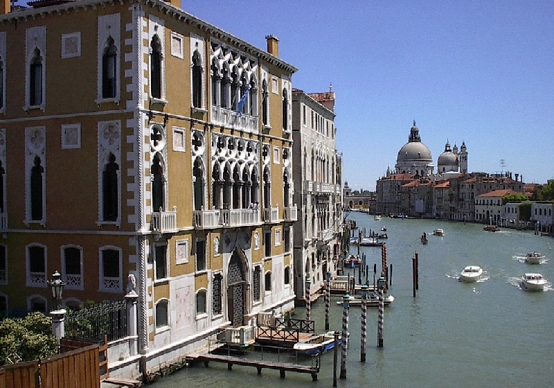 These pictures are of my 2 1/2 days in Venezia, Italy, in late May, 2004, made possible by my friend, Sandy Hugill. I wanted pictures that demonstrated what it was like to be there, so I tried to capture everything I saw, not just the "post card" shots. Looking back at them, I can honestly say that these photos are a very accurate representation of what it feels like to be in Venice (at least the parts I got to see). As for the smell and the sounds, Venice is very similar to your favorite theme park. It's mostly made up of tourists, so almost everyone speaks at least a little English and there is always activity, so it's never quiet. In addition to the wonderful smell of Italian food, there is the water, in which they seem to dump just about anything, so it occasionally hits you with a very "rich" odor. Despite all of that, it's still quite beautiful and if you can look past what we've done to it, you can still feel the romance of a time passed.
